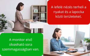 Az első lépés az ergonómia. A szék legyen állítható, a talpad érjen le a talajra, a monitor első olvasható sora szemmagasságban legyen, és ne lógjon a csuklód gépelés közben. Jó, ha szimmetrikusan van elrendezve a munkaállomás – különösen, ha ügyfélszolgálaton, recepción vagy két monitorral dolgozol. Ha gyakran oldalra kell nézned, terheled a nyakizmaidat és a gerinced egyensúlyát.